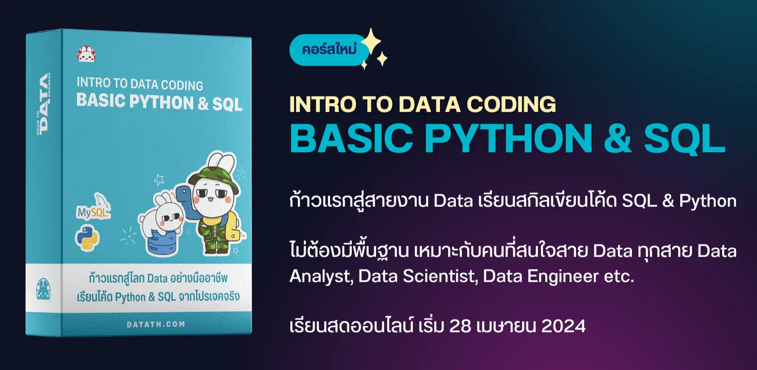 ✅ เริ่มก้าวแรกสู่สายงาน Data อย่างมั่นใจ ด้วยการเรียนพื้นฐาน Python & SQL ซึ่งนำไปใช้ในงาน Data ได้ทุกสายงาน
